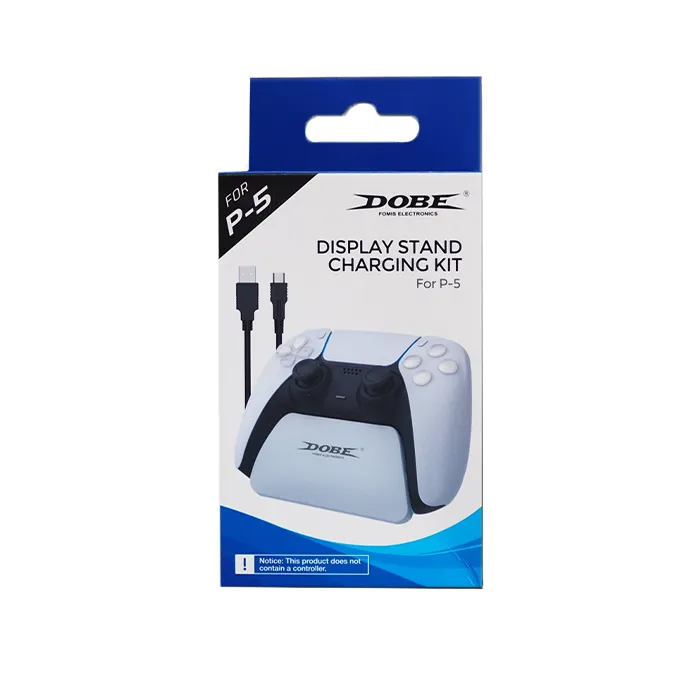 استند شارژر Display Stand Charging Kit Dobe قابل اتصال به پلی استیشن 5، کامپیوتر، پریز برق و آداپتور USB برای تأمین برق دارای چیپ داخلی برای محافظت از باتری کنترلر پد ضد لغزش در زیر استند می باشد.
